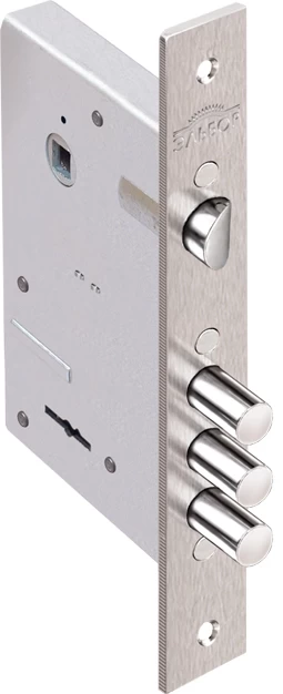 Замок врезной сувальдный с защёлкой Кремень 1.04.27 имеет 6 сувальд, предназначен для внешних, внутренних и межкомнатных дверей. Закрывается на два оборота, вылет ригелей 21 мм. Соответствует 3-му классу безопасности. В замках используются серийно изготовленные пружины с соответствующими прочностными характеристиками.