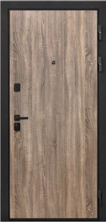 Дизайнерская входная Дверь Интекрон Профит Black (фурнитура черная) Дуб турин класса Люкс с несколькими листами стали, звукоизоляцией и теплоизоляцией. Утепленный короб и полотно защитят от сквозняков и шумов. Модель не только надежная, комфортная, защищенная и высочайшего качества, но и очень красивая! Будет отлично сочетаться с интерьером дома, квартиры или офиса. Сейчас действует выгодное предложение по цене: 72 500 руб.