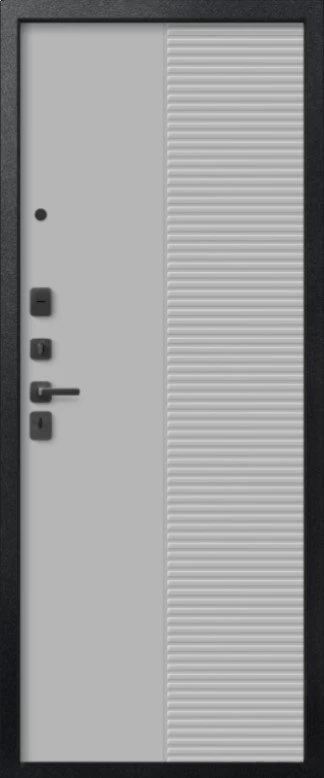 Надежная входная Дверь V-18 Черный муар + Кашемир графит - Кашемир сильвер премиум класса по цене 42 250 руб. Большая толщина стали защитит от проникновения в ваш дом, квартиру или коттедж. Используется очень качественная фурнитура: замки, цилиндры, ручки, защелки. Покрытие и отделка двери изготовлено под внимательным контролем производителя. Дверь имеет долгий срок службы и гарантию.